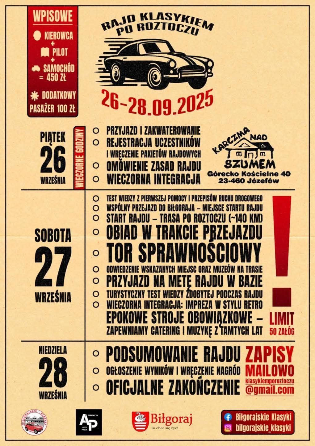 W dniach 26–28 września 2025 r. odbędzie się wyjątkowy Rajd Klasykiem po Roztoczu.